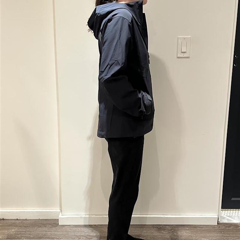 [This review was collected as part of a promotion.] Just received this jacket, and really like the fit and material. I am typically a S but sometimes size up for outer layers - but the S fits me great. Not overly boxy but room to layer with a puffy and not too tight around the hips. I am 5'3" for reference. The material has excellent stretch and is super comfortable. As someone who typically wears hard shells, I'm excited to have this in rotation to break out for tours, especially when there isn't rain or wet snow in the forecast. I received this product for free in exchange for my honest review.