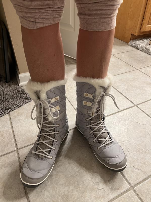 [This review was collected as part of a promotion.] Although it was a major hassle buying these boots because my orders for the white color kept getting cancelled, I was finally able to buy the gray color instead and I love the boots. They keep my feet and shins nice and cozy in the freezing Colorado temperatures this winter, and the waterproof feature keeps my socks perfectly dry despite the absurd amount of snow this year. I'm not as in love with the lace up feature (I was replacing a worn out pair of zip-up Columbia boots), but the shoes are so great that it's not a deal breaker.