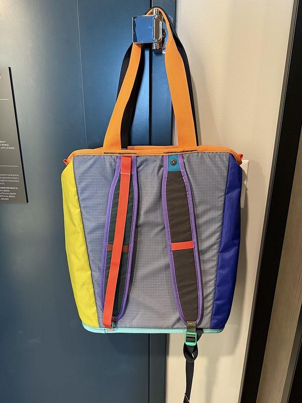 Del Día Todo 22L Convertible Tote hauls daily essentials in a vibrant, pack-to-tote hybrid