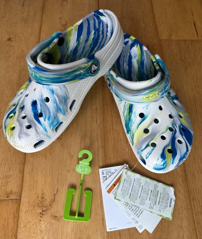 All-new marbled effects refresh the iconic clog that started a comfort revolution around the world, charmed kids everywhere and made parents fall in love with their easy-to-wear, easy-to-clean design! Our new marbled Croslite foam creates a colorful effect that is completely unique. While all marbled shoes have the same wavy look, no two shoes are exactly alike. Crocs Classic Clogs feature lightweight Iconic Crocs Comfort and a color for every personality, and remind kids of all ages to go out and play.