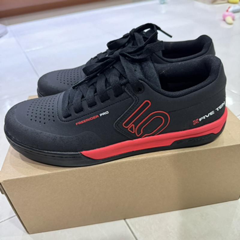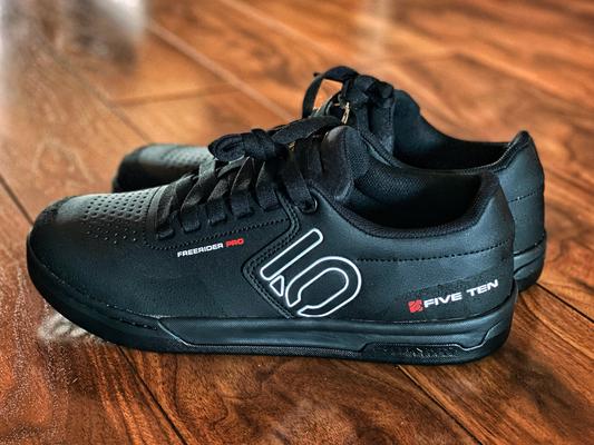 Five Ten Freerider Pro men's cycling shoeDurable mountain bike shoes for menImpact-resistant toe box for cyclingBest flat pedal shoes for mountain bikingStealth S1 rubber outsole for gripEVA midsole for shock absorptionQuick-drying synthetic upper for cyclistsComfortable cycling shoes with OrtholiteMen's enduro cycling shoes with lace closureAbrasion-resistant footwear for trail ridingPro model cycling shoes for downhillRecycled materials in Five Ten shoesLearn more about Freerider Pro Cycling Shoe - Men's