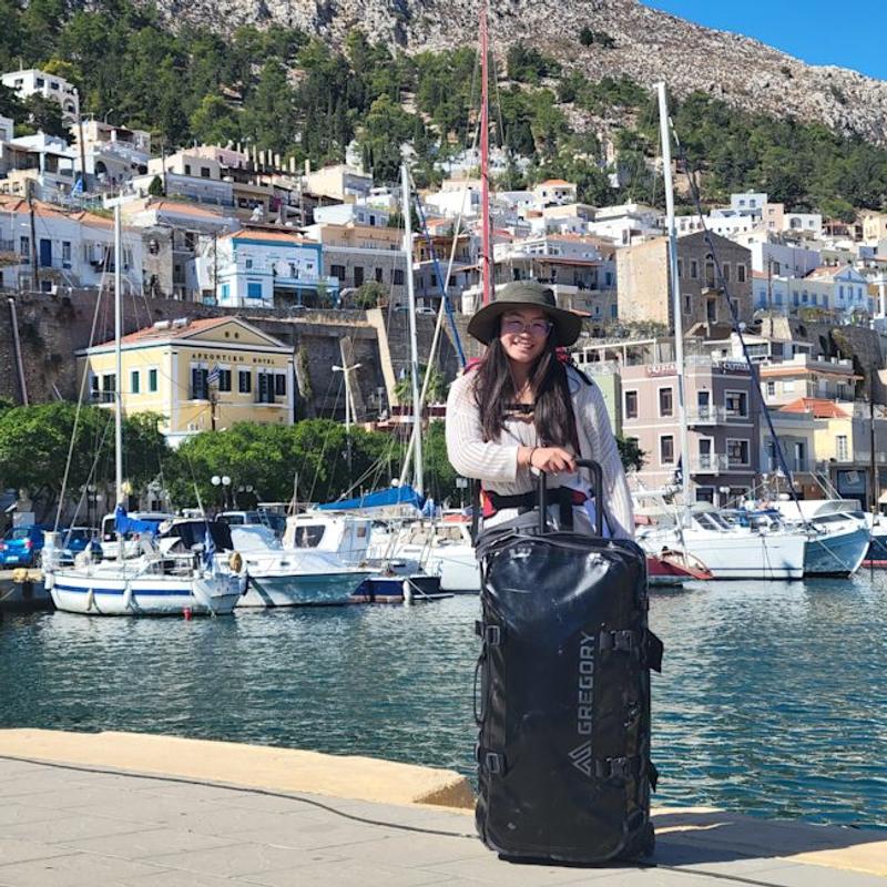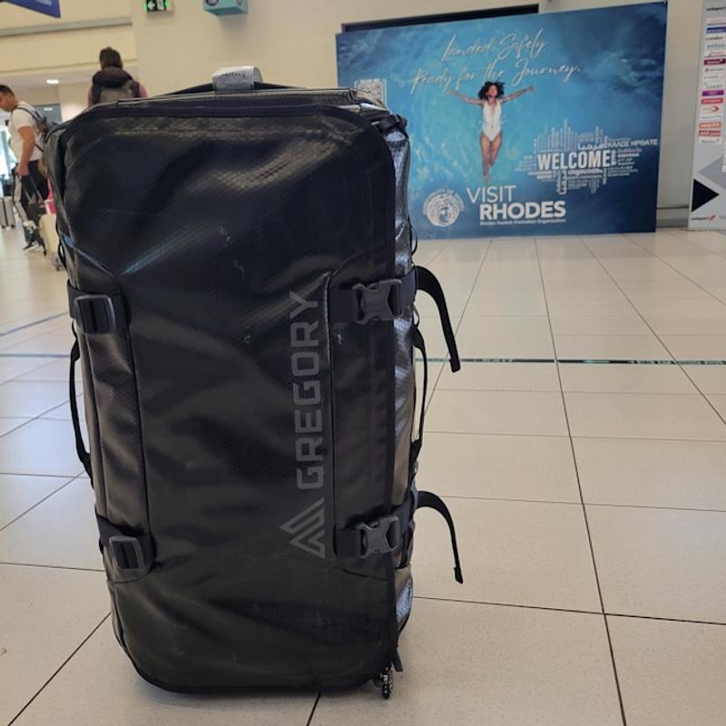 [This review was collected as part of a promotion.] For my upcoming trip to Greece, I was already looking for a new travel storage method and was leaning towards a duffel that is easy to manage and able carry my oddly shaped things (climbing gear). The duffel fits checked bag standards and I was able to fit all my climbing gear in it before filling it up. The issue was that the climbing gear was heavier than the 50 kg limit. I ended up having to take out some climbing gear and packing the rest with clothes, which is probably a better idea since the duffel part of the bag is not as protective. The capacity of the bag easily has room for my and my boyfriend's clothing. We flew out of Denver and had a layover in Munich on our way to Thessaloniki. We eventually made our way to Rhodes by plane, then Kalymnos by ferry. The wheeled duffel made it through three airports, a boat, and many cobblestone streets. It gained a few scratches from the airports. The wheels are quite burly and have a large radius, allowing it to roll over things more easily. I have full confidence that the duffel will hold up. As mentioned earlier, what I like about the duffel is the adaptability of the storage. Our stick clip for climbing fit perfectly inside - it stood fully vertical. In a traditional hardshell checked bag sized suitcase, I would lay it diagonally and over some suspicious ridges. I like the sleek outer aesthetics and the bright inside, which helps me quickly locate things. Additionally, I like that because it is half duffel, it can fit into skinnier spots like under my bed. I really love that it can also stand on its own. Lastly, everything seems very well made and strong - the buckles, wheels, and fabrics are to highlight. I believe the material is waterproof. One possible concern was that while rolling over uneven and bumpy terrain was that the grip of the telescoping handle felt rough and sandpapery over long distances. It could break in overtime. While the fabric is thick and made of a nice material, it did pick up some scratches. This was my first international climbing trip and second climbing trip overall. My first climbing trip was with a traditional hardshell suitcase and I will not go back. Gregory gave me this free product to try. I received this product for free in exchange for my honest review.