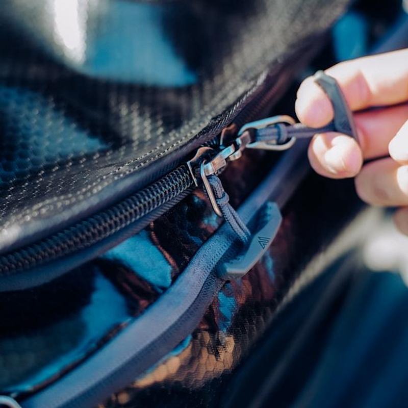 - Oversized wheels and smooth #10 YKK zippers with T-grip pullers