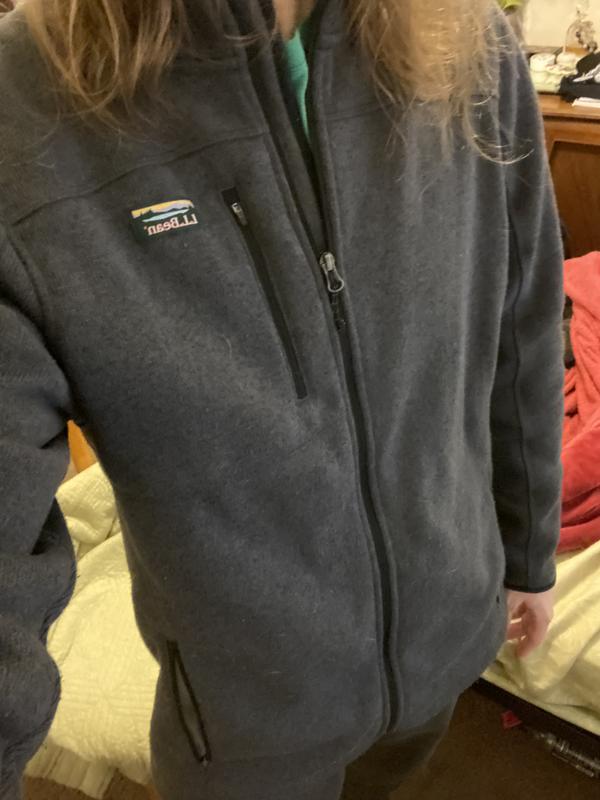I have 2 of these Full Zip Sweater Fleece. I first bought the Bright Navy color and wore it in place of sweatshirts for most of the year. It is a great looking casual jacket that has a great fit to it - it's all I wanted to wear. I really like the slightly fitted style and hope Bean continues to make slightly fitted tops. The only con is that the fleece fabric does pill a little after washing due to the weave of the fabric (doesn't bother me too much). I'd like to see Bean make another fleece with the same fit only using the traditional fleece (short fuzz) material. I ordered another of these recently in Shadow Green which I also like even though the shadow green material seems a just a little bit thinner than my first Bright Navy jacket purchased about a year prior. On a different note, I would also like to see Bean bring back their former full zip "Cresta Fleece" jacket with the nylon shoulder and sleeve patches and using the traditional fleece material for pill free performance.