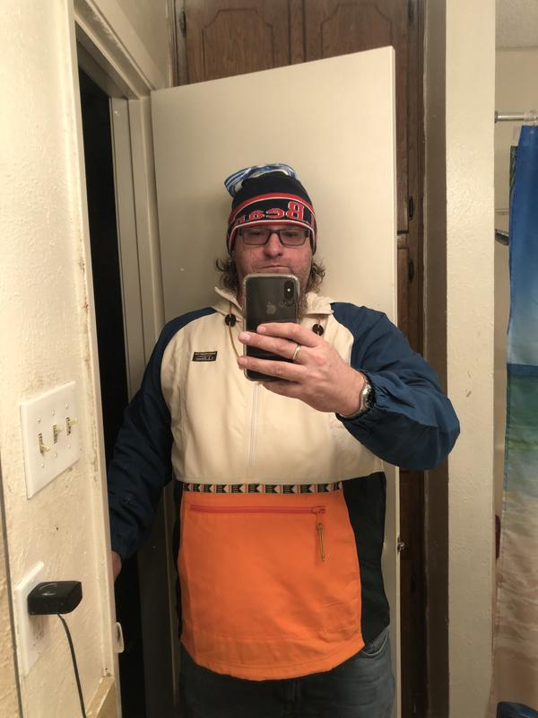 This worked perfectly on some cool day hikes we took in Sequoia and Yosemite parks. I wore this over a typical cotton t-shirt when temps were in the lower 50’s, it kept me warm and comfortable all day long. The deep zipper closure pocket in the front is great for storage of important items, the huge pocket in the front can hold almost anything! This pullover is always stowed away in it’s own pouch, in the bottom of my pack.