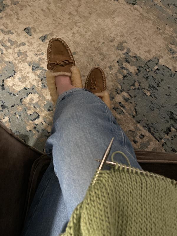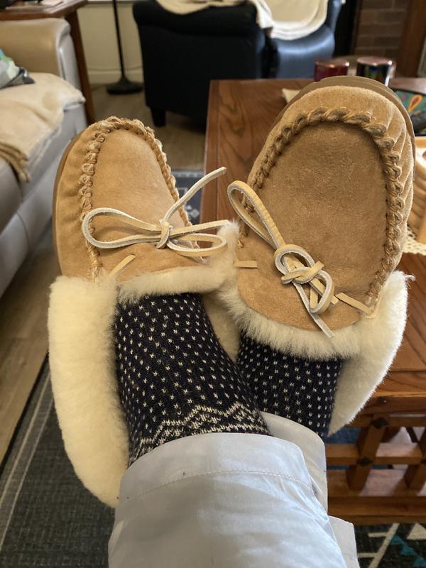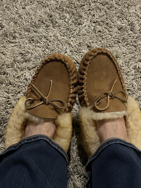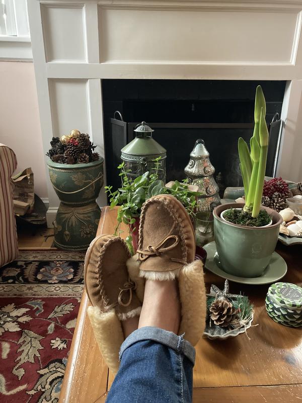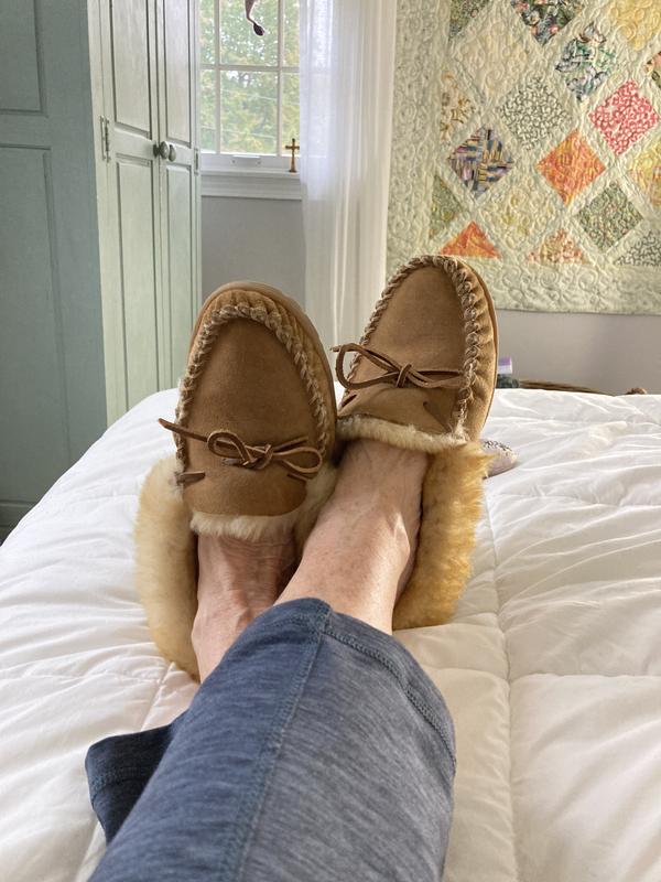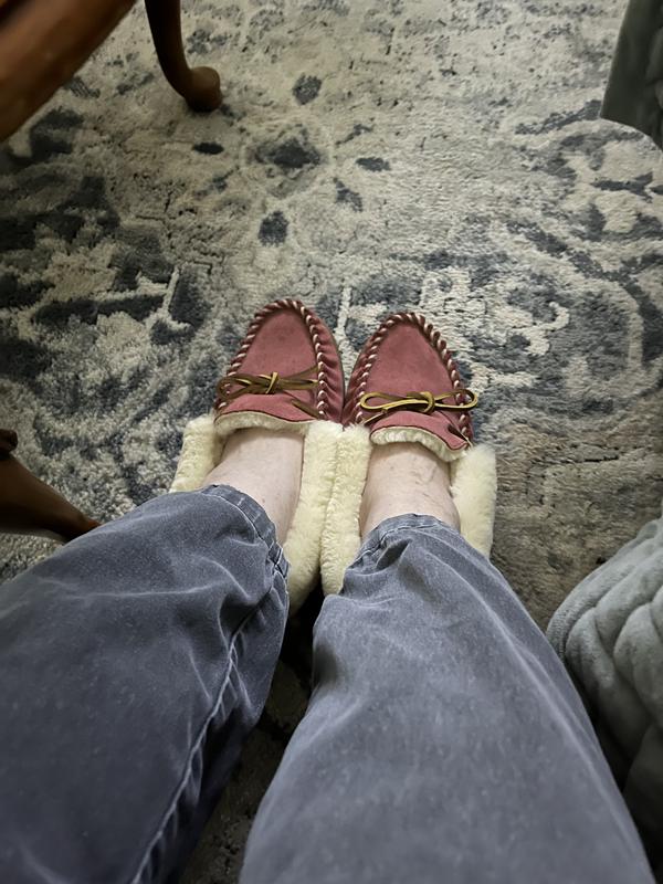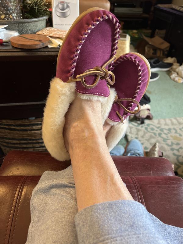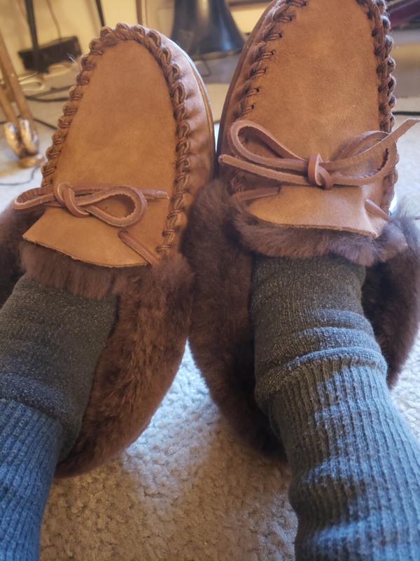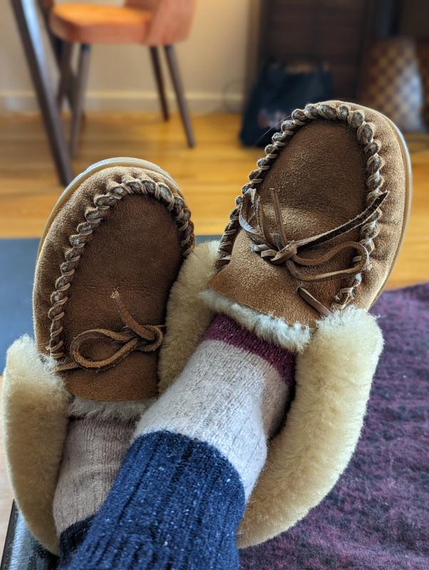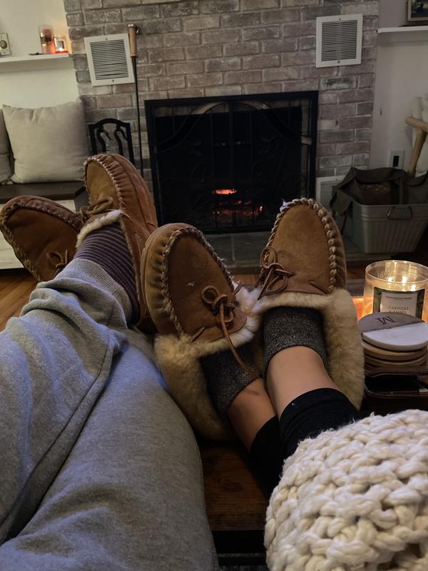 Wicked Good Moccasins surround feet in plush shearling warmth and timeless suede style