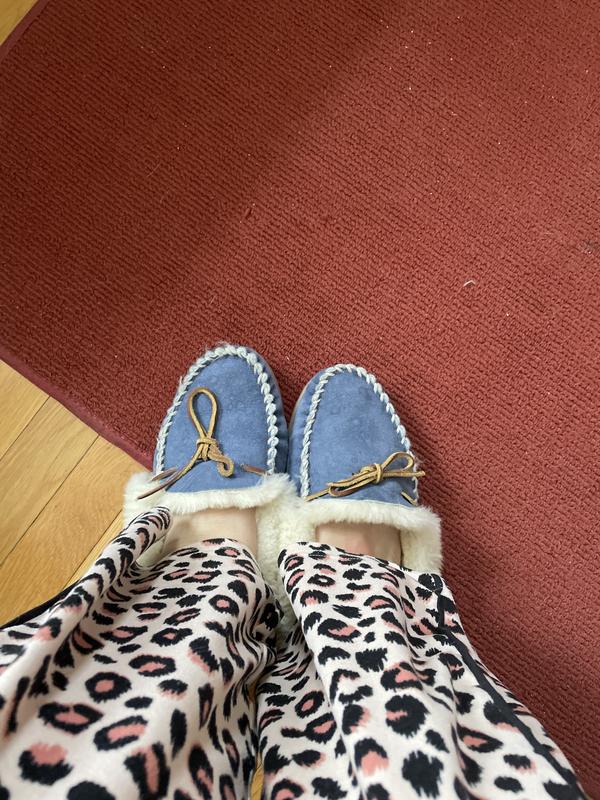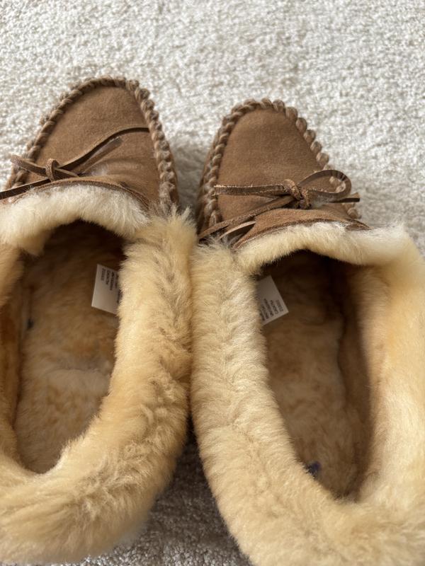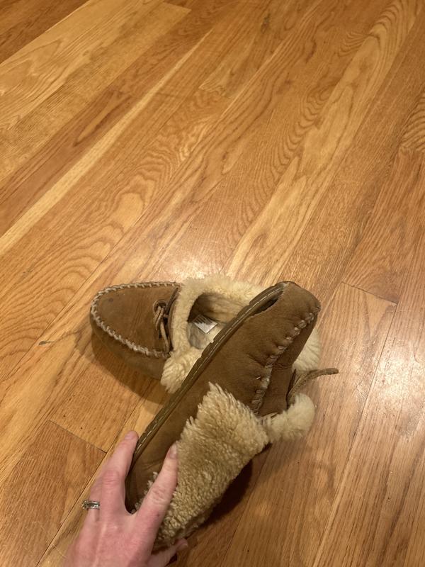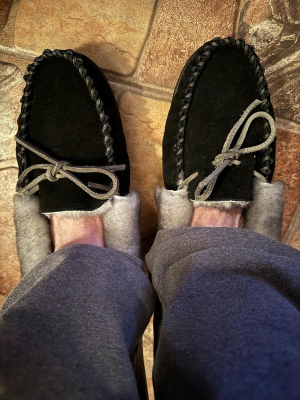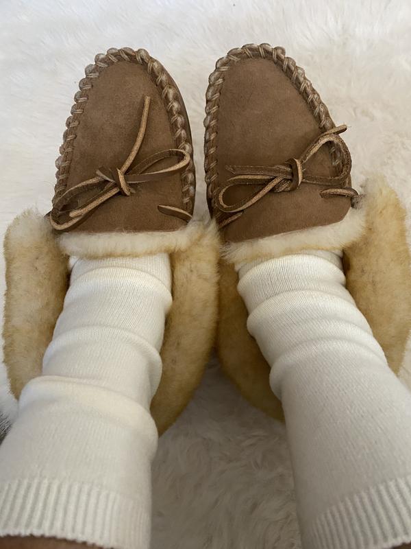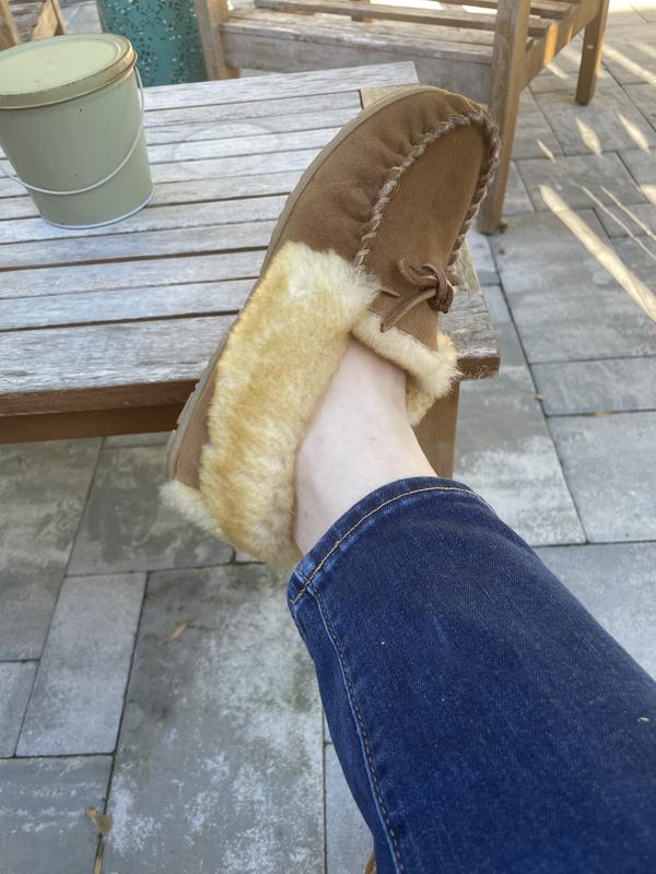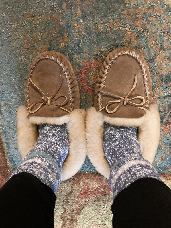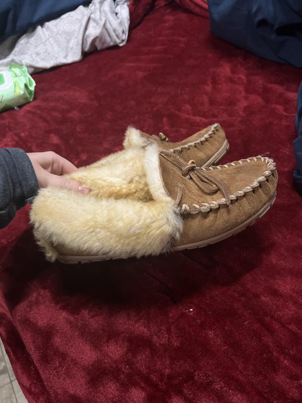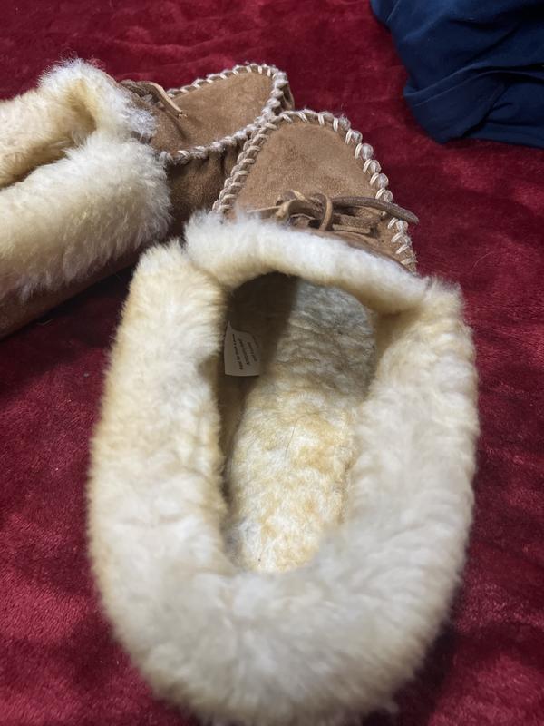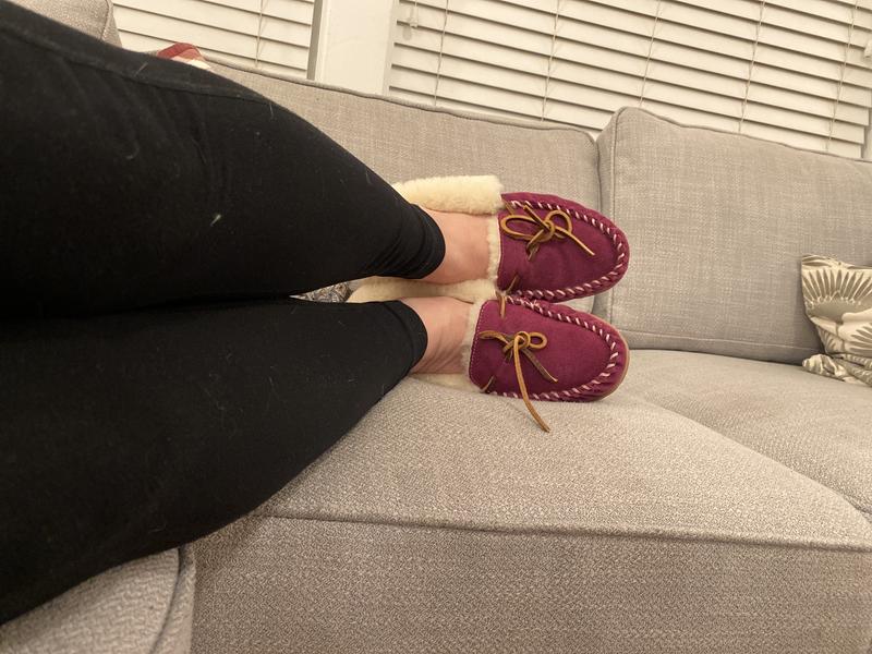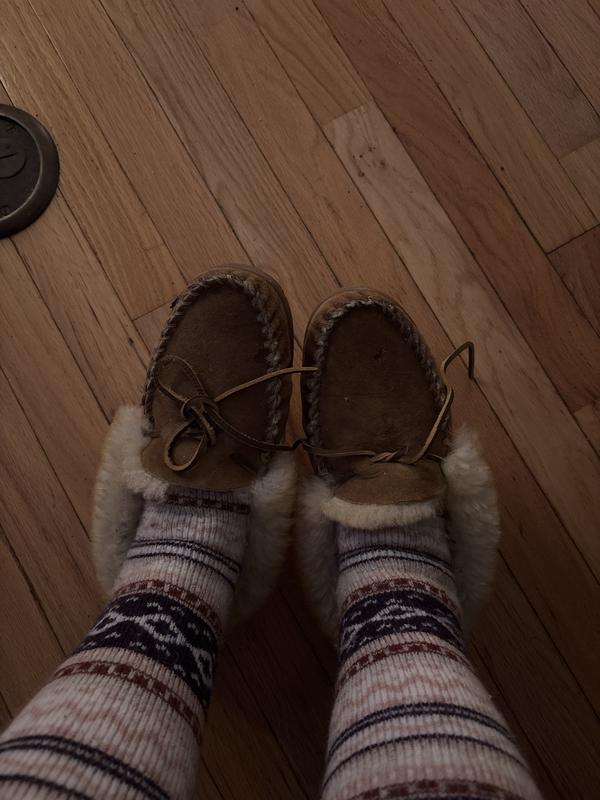 Wicked Good Moccasins surround feet in plush shearling warmth and timeless suede style