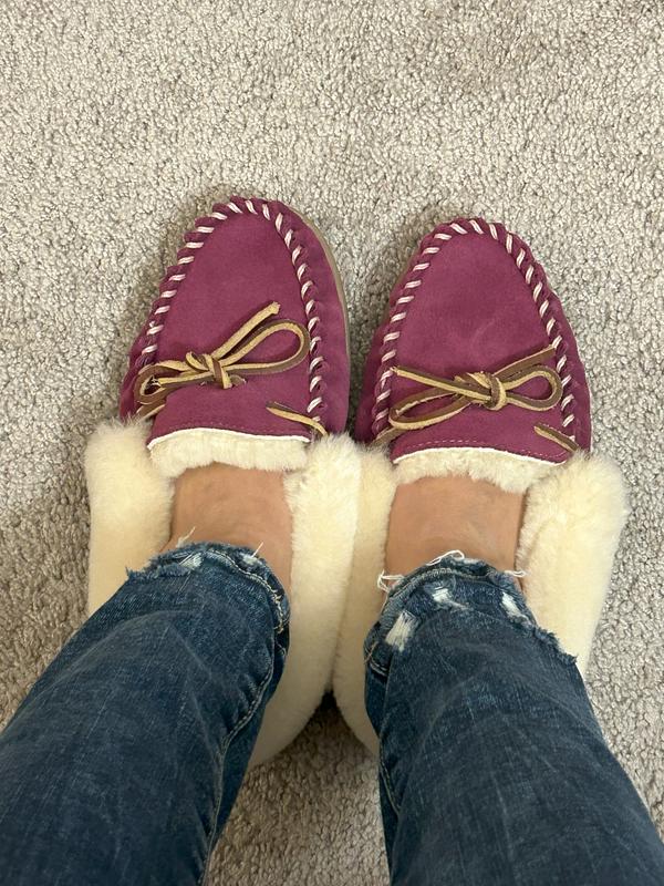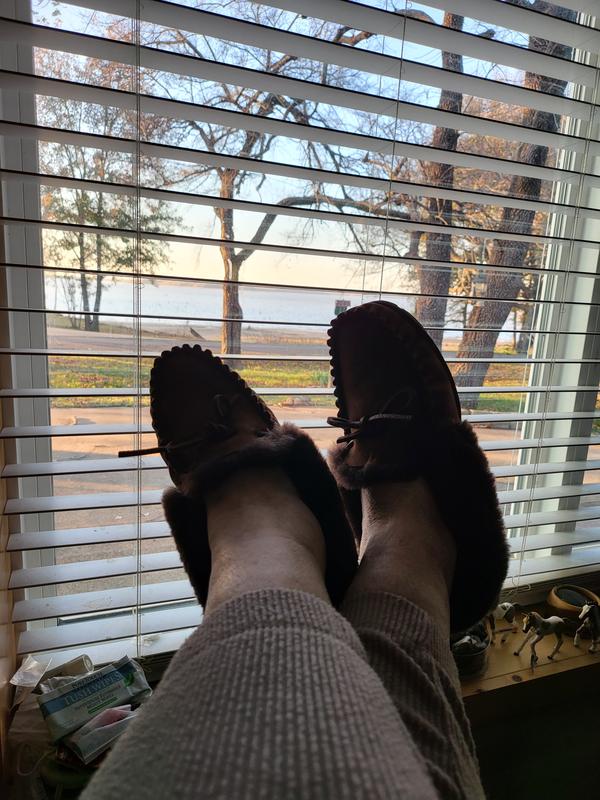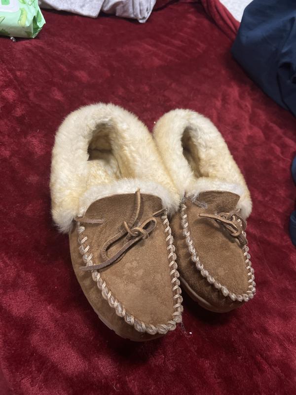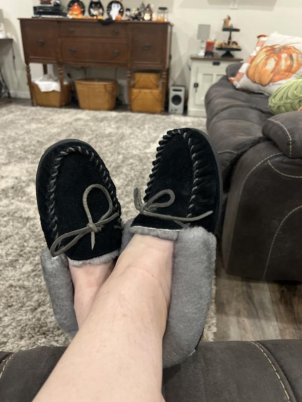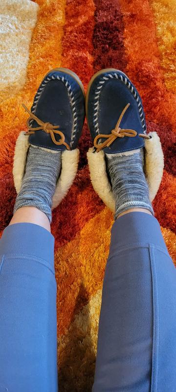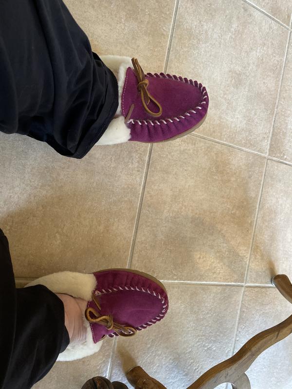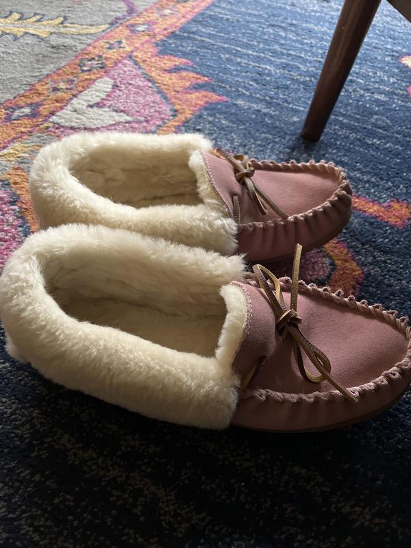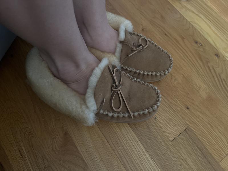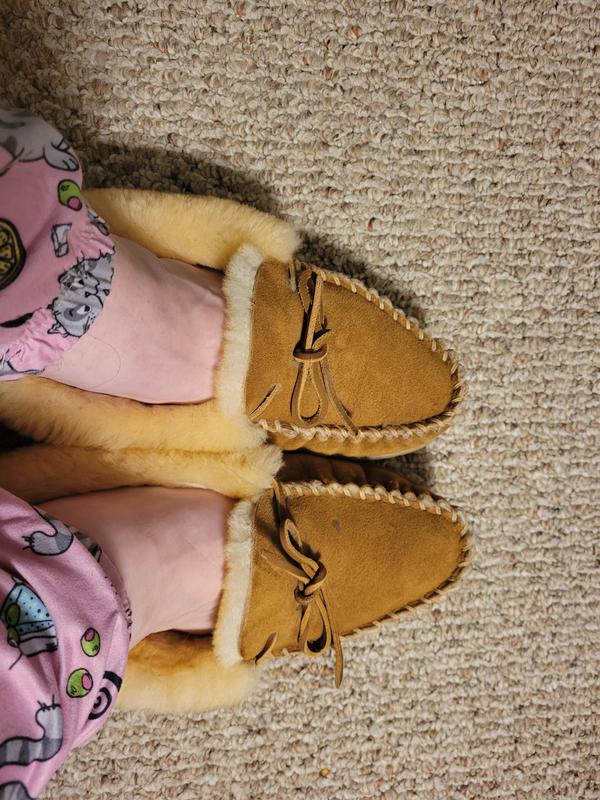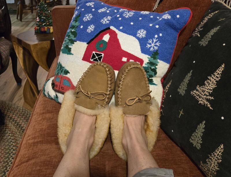 Wicked Good Moccasins surround feet in plush shearling warmth and timeless suede style