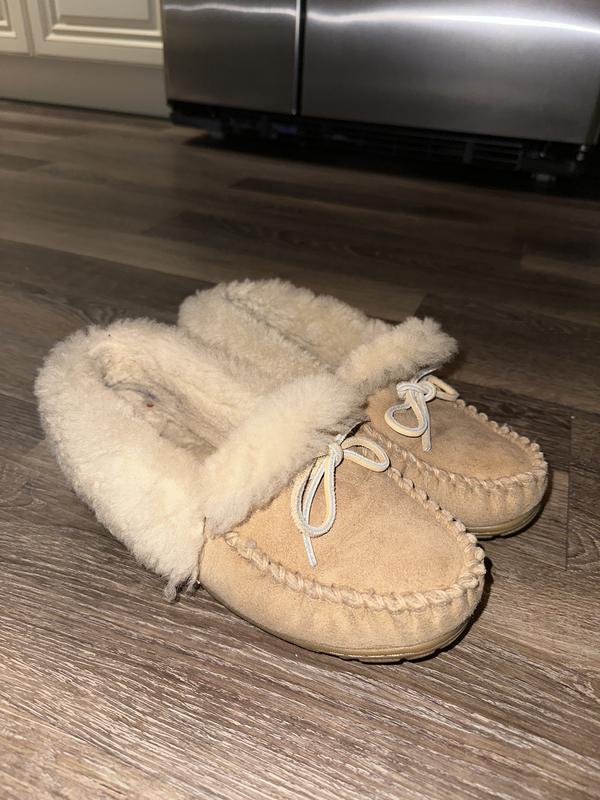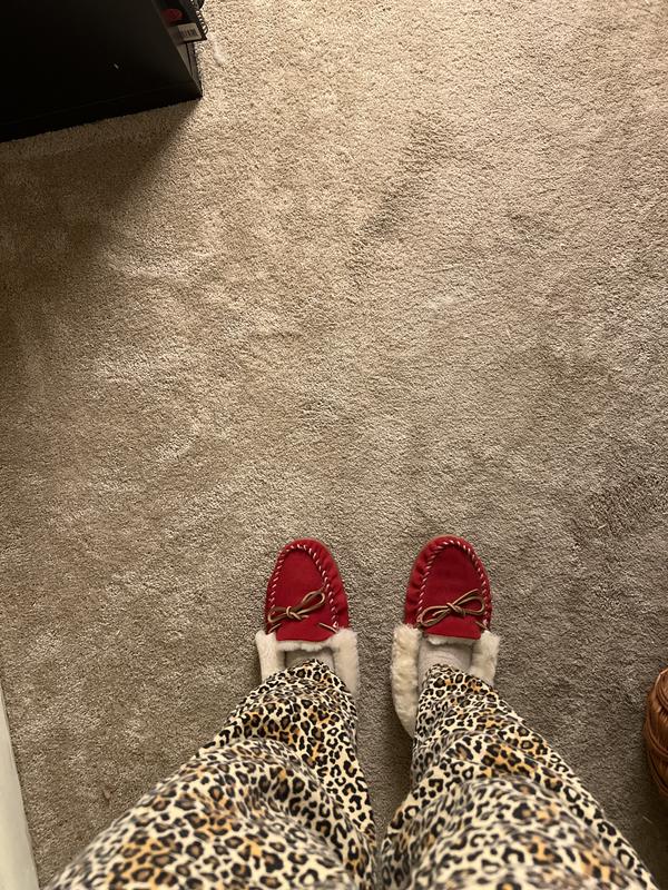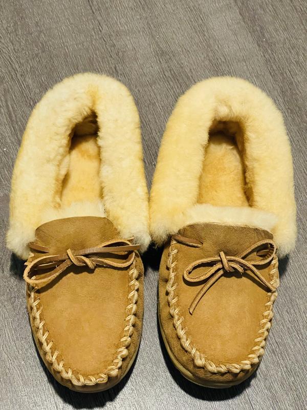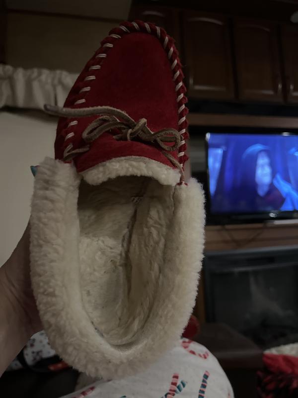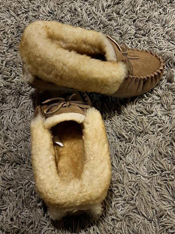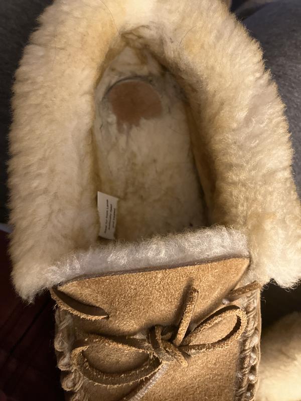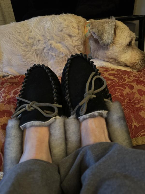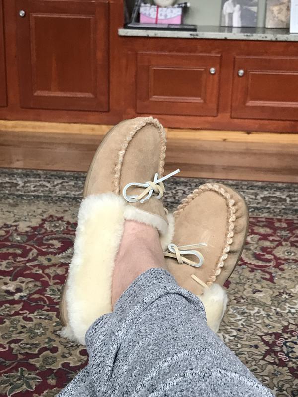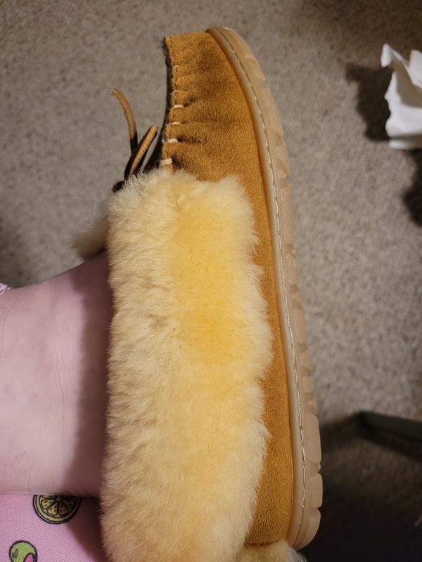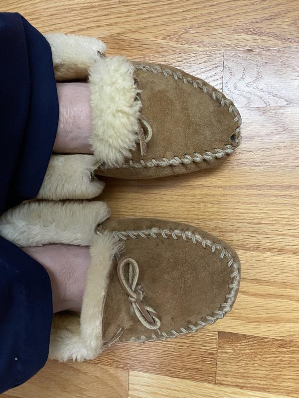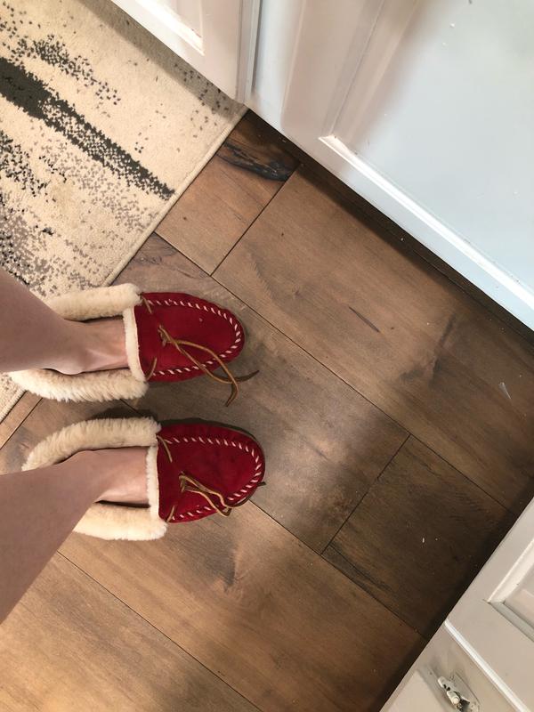Wicked Good Moccasins surround feet in plush shearling warmth and timeless suede style