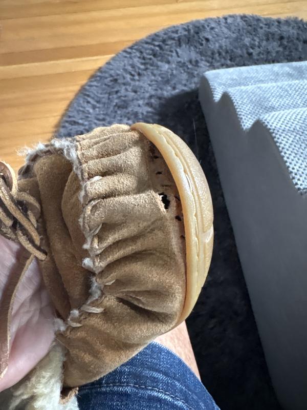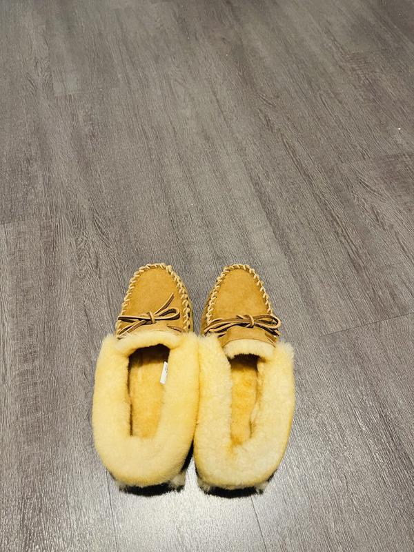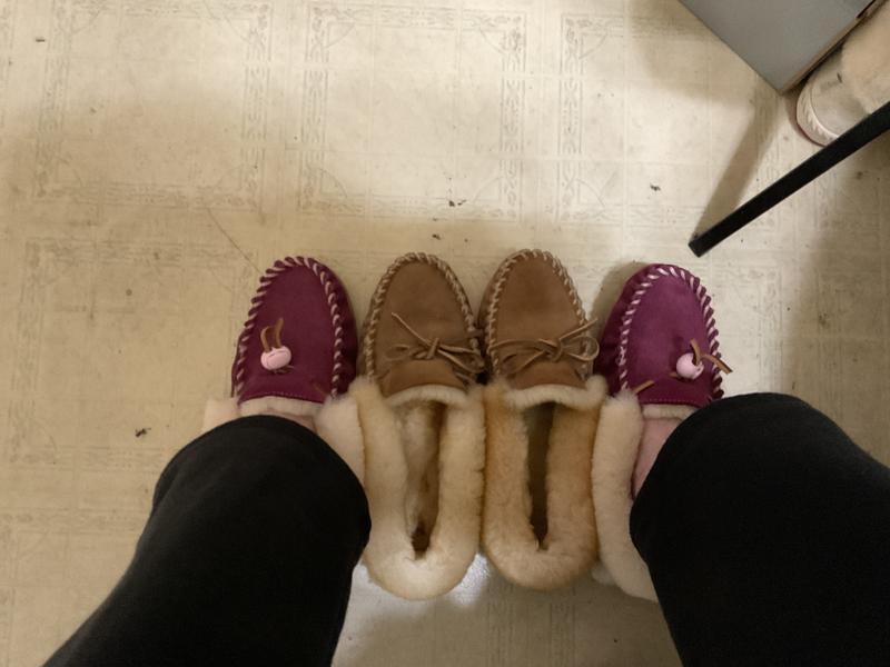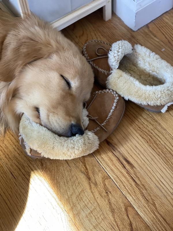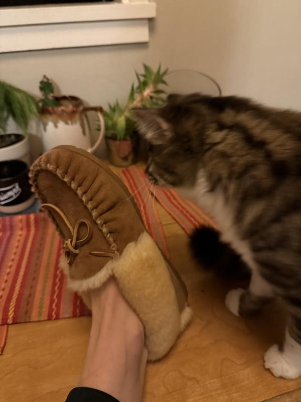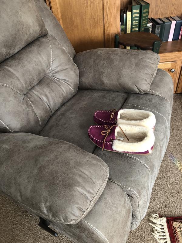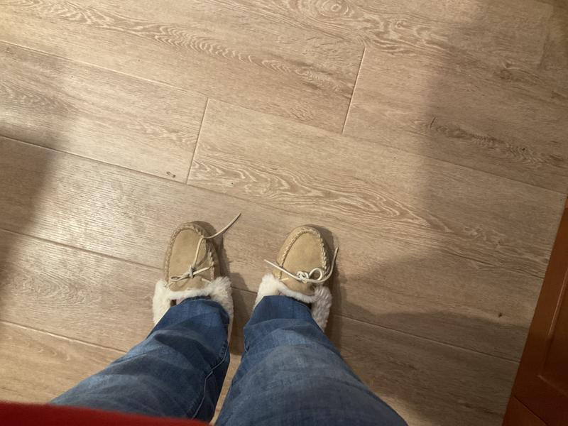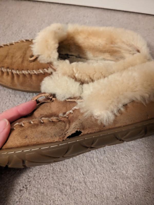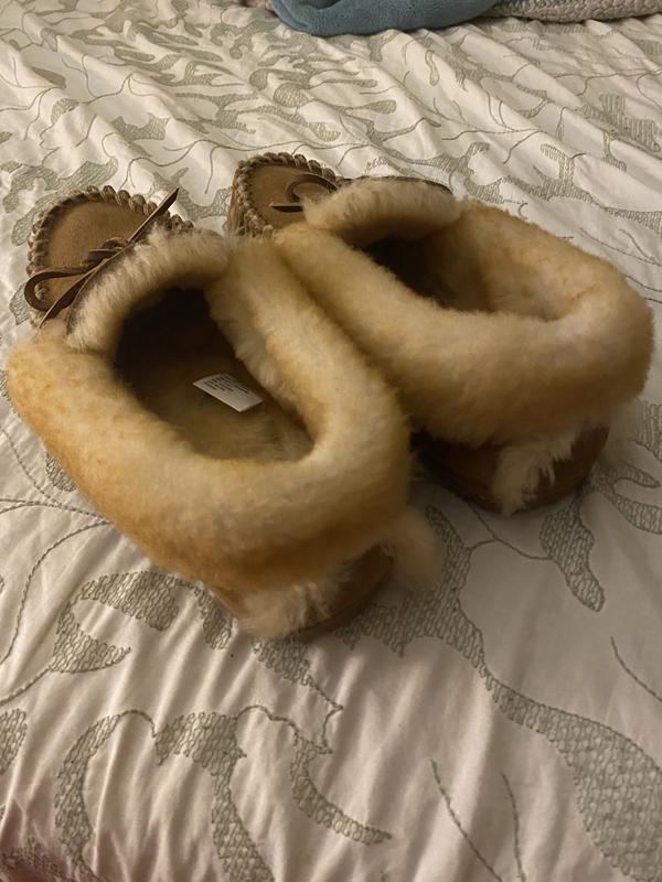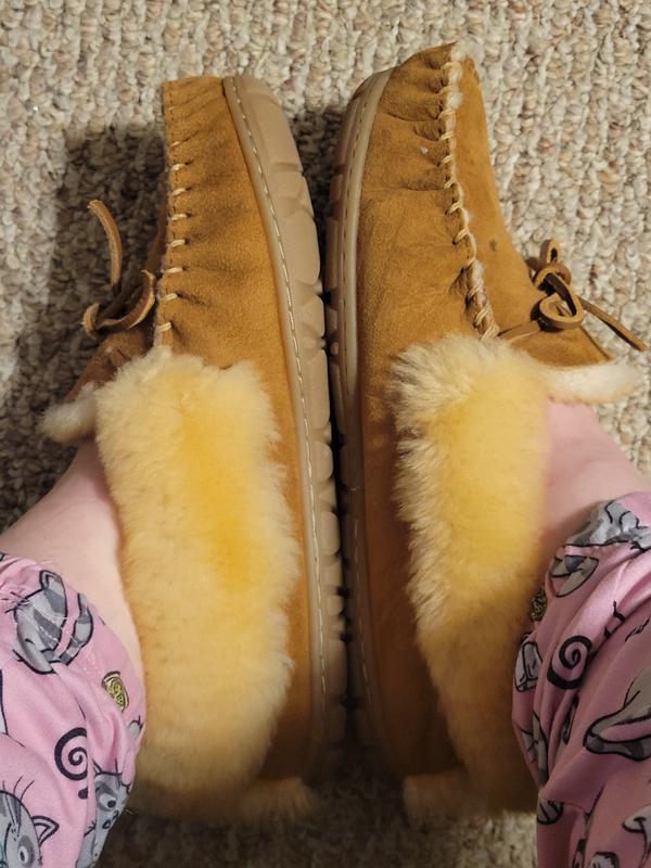 Wicked Good Moccasins surround feet in plush shearling warmth and timeless suede style