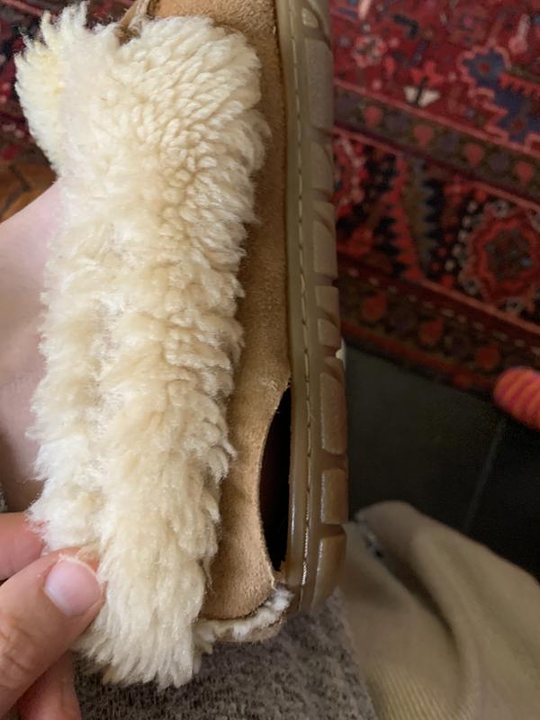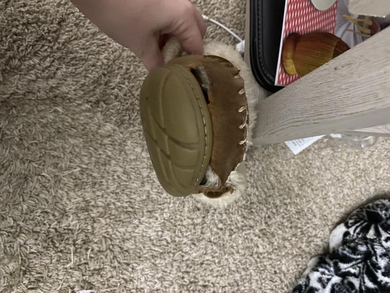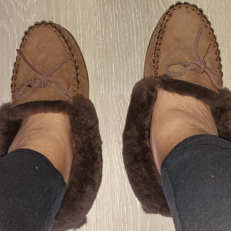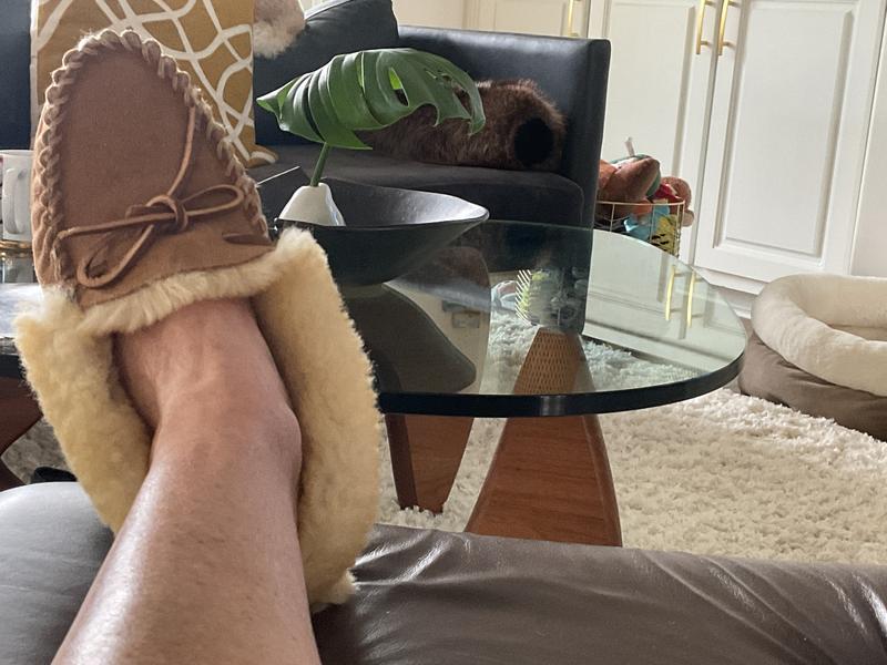 "These slippers are a year-round favorite of mine. The shearling is unbelievably soft and keeps my feet warm without overheating, and the suede holds up beautifully even after seasons of use. The rubber sole makes them practical for quick trips outside, which I really appreciate."