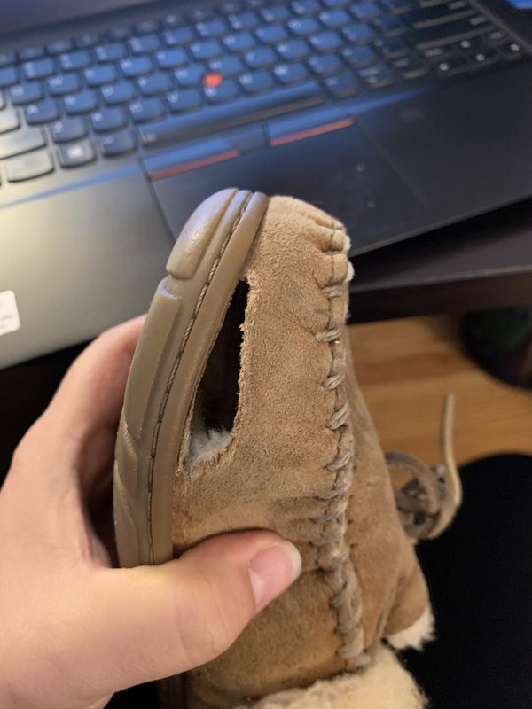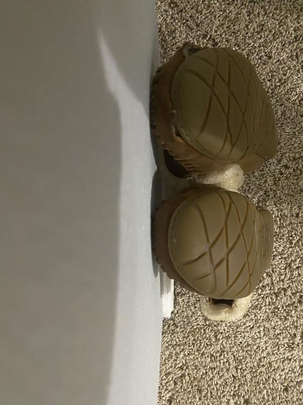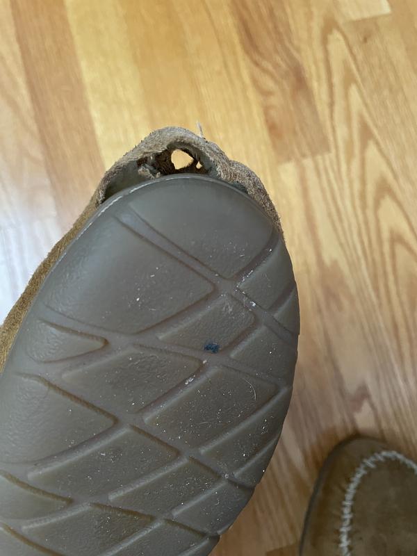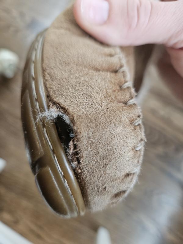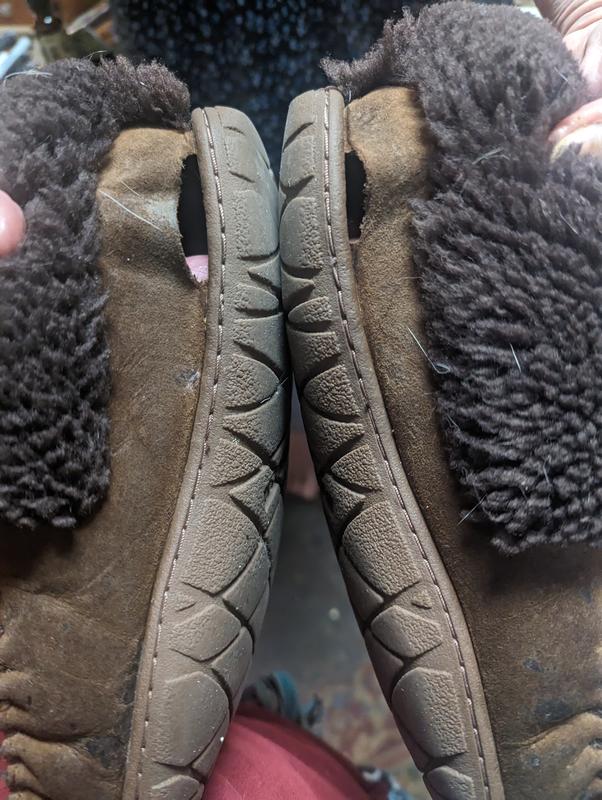 This is the second pair I have purchased from you. The first pair wicked good camp moccasins were slipping off my feet even though the correct size. Sent them back and purchased these. Still disappointed. The back half of the slipper is too wide and provides no support for your foot. The toe half is fine. Feels secure. Very disappointed since this is the second type of slipper I have tried.