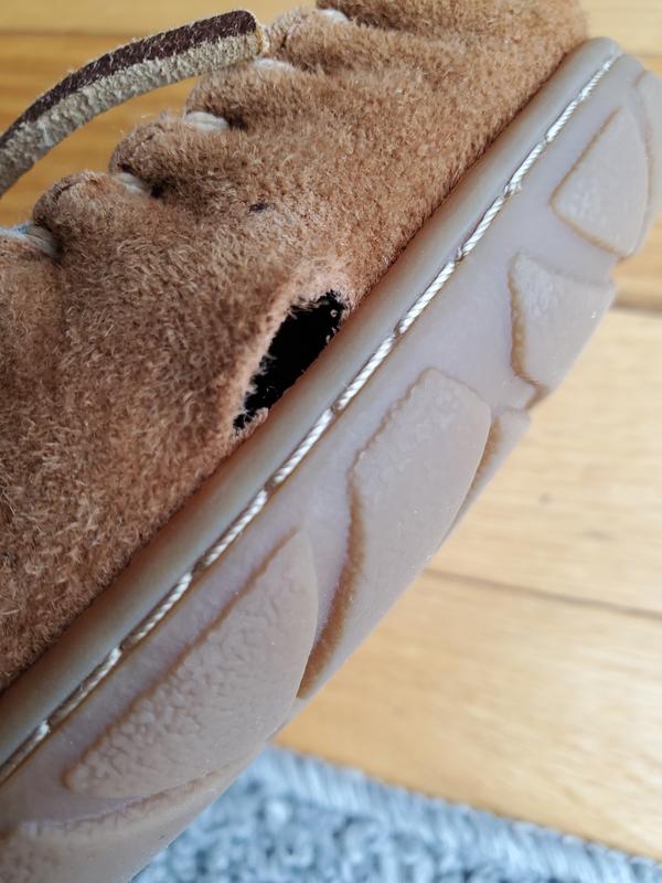 I bought these slippers a few weeks ago. They are by far the coziest, warmest slippers I've ever owned. I put them on at home and walked around on my hw floors and they squeaked like a gym floor kinda sound. I wrote a review afterwards expressing my disappointment BUT now I'm retracting it. THE SQUEAK STOPPED AFTER WEARING THEM FOR A FEW DAYS! I'm so glad bc they are so comfortable and warm. Definitely a 5* slipper!