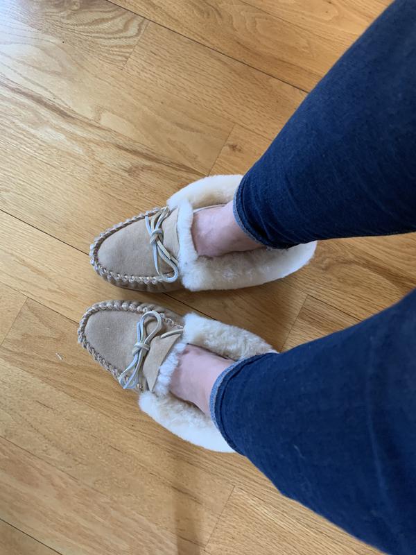 I've never had any other shoe that makes my feet happier than my LL BEAN moccasin house shoes. The size and width is true to size. The warmth and comfort are like a comfy, fuzzy, house coat for your feet. If I'm in the house I'm in my moccasin!