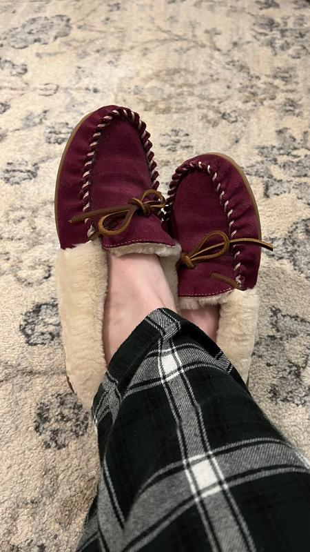 The genuine shearling lining naturally wicks away moisture and regulates temperature, keeping feet dry and perfectly warm. A supple suede upper with rawhide laces adds timeless moccasin style and lasting durability, while the rubber outsole provides traction and stability both indoors and out. With more than 50,000 five-star reviews, it’s no surprise these slippers have become an icon of comfort season after season.