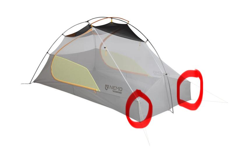 The NEMO Mayfly OSMO Tent offers lightweight luxury as we chew up miles on the trail and pick our perfect campsite. The innovative Divvy Cube stuff sack allows us to split up the tent for easier packing in our own bag or sharing the weight with our partners on the trail to keep our packs light and easy to carry. NEMO's OSMO fabric keeps the interior of the tent dry, and the large mesh canopy maximizes airflow to keep us cool and comfortable all night long. The spacious floor area accommodates up to three sleepers, and two vestibules provide plentiful storage to keep our gear protected overnight.