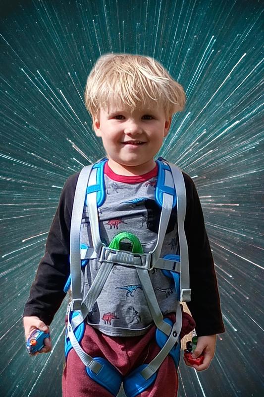 Bought it for my 3.5 yo son. He has expressed interest in climbing, and has shown some aptitude for climbing the little wall at the neighborhood playground. But really I bought this for our hiking adventures. My son is fearless and quick, but kinda clumsy. We live in Ouray Colorado, so most of our hikes have a ton of vertical exposure. We wear our climbing harnesses and I tie him to me with 4-5 meters of 6mm accessory cord. I tie a few alpine butterfly loops in the middle so I can shorten up the rope as needed. The harness is great because he can't get out of it without my help. And when he's ready to hit the gym or the crag, it will still fit him.