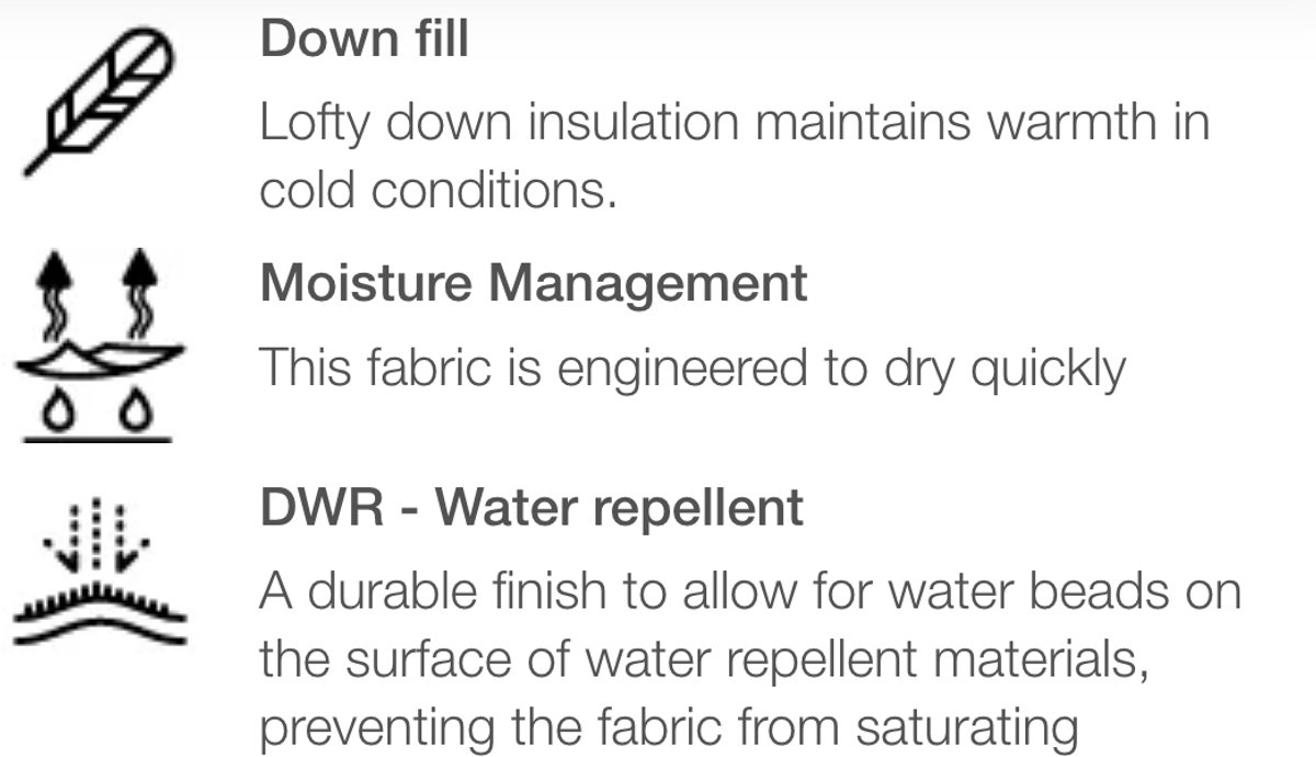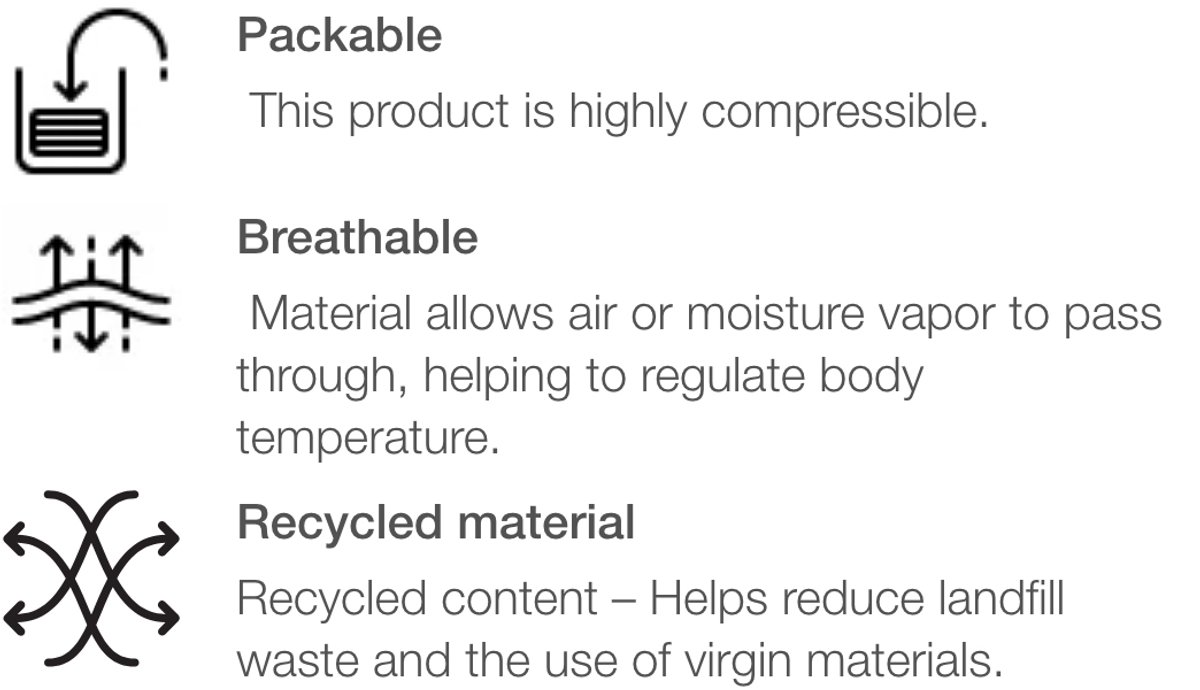 - [face fabric] (solid) 40D nylon ripstop, DWR treatment, (heather) 50D polyester, DWR treatment, (metallic) 30D polyester, DWR treatment, [accent] 50D nylon, DWR treatment, [lining] 100% nylon