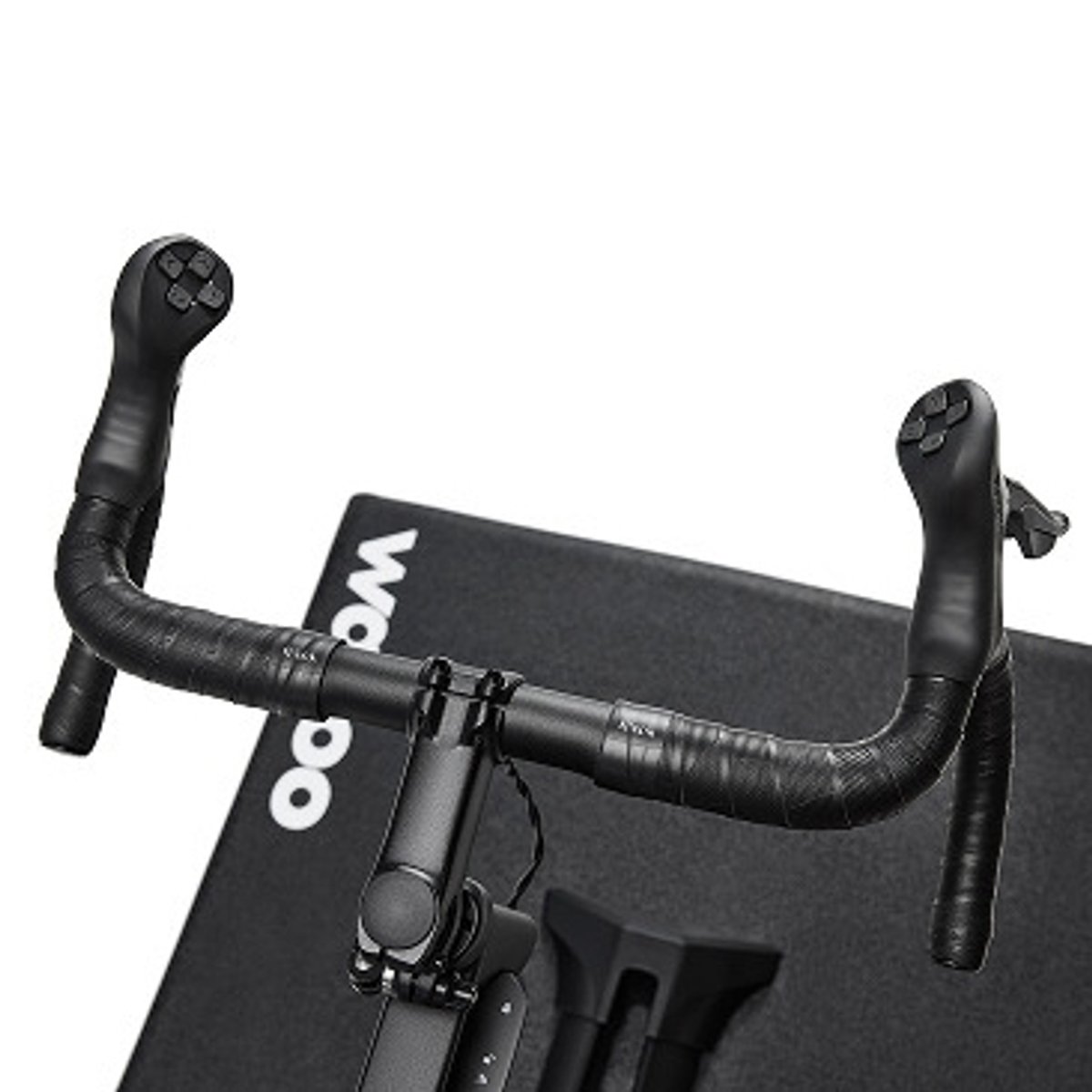 KICKR BIKE PRO features Fi’zi:k Solocush handlebar tape and a new ergonomic handlebar to support longer sessions and harder efforts with greater comfort .